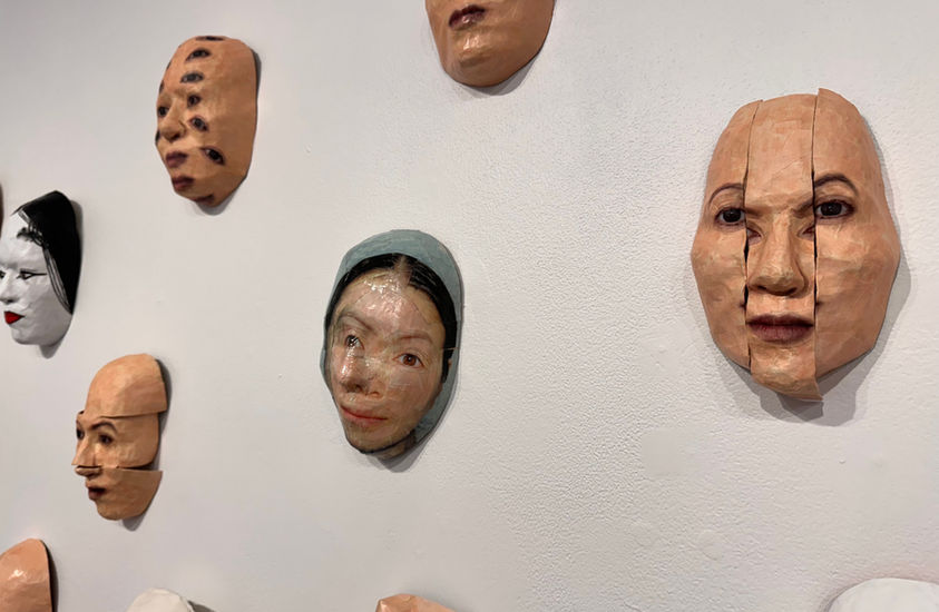 A solo exhibit by Miya Turnbull featuring self-portrait masks, sculptures and photographs
