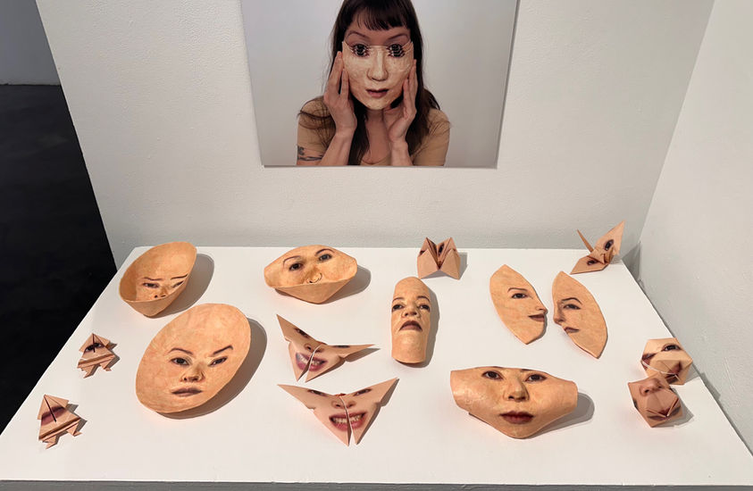 I work in many different mediums including mask-making, photography, animation, video, performance, paintings and textiles. For the past several years, I have been focusing on making Self-Portraits, using my Photo-Mask technique to make life-like representations of my face. I often distort and manipulate my image in various ways, which I then wears as a 'false face', as a way to explore persona and identity, including my mixed Japanese Canadian/British Canadian ancestry.